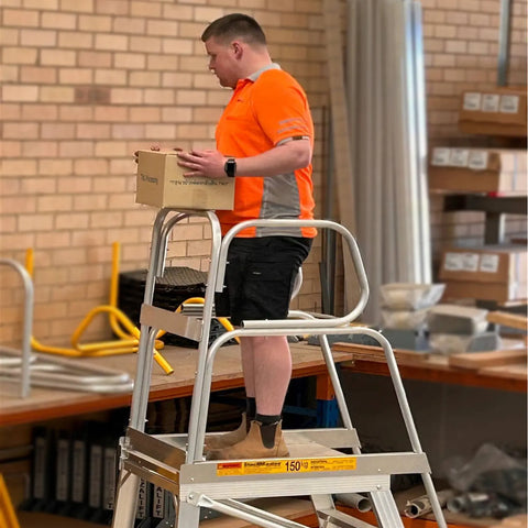 If your work takes you between the workshop, loading dock, car park or outdoor yard, the Tracker is built for that reality. The large wheels and balanced frame mean you can roll straight to the job instead of carrying or manhandling a platform ladder over rough ground.