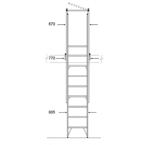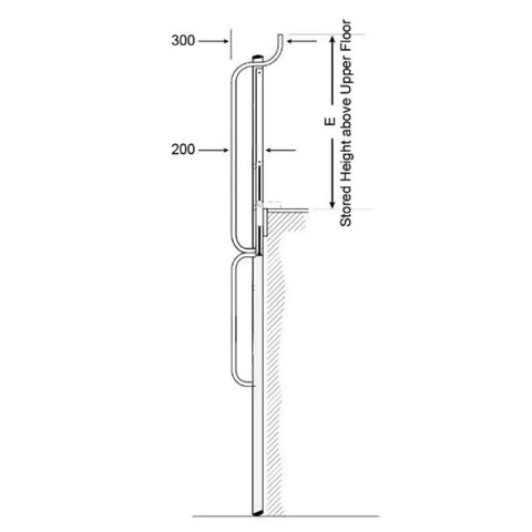- Upper floor intrusion: When opening into the use position, the ladder intrudes into the upper floor area. Check available space on the mezzanine where the ladder will land.